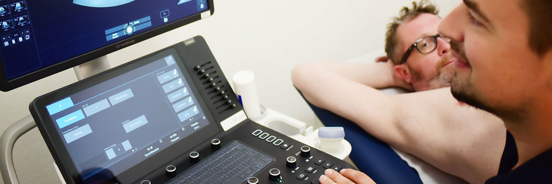 Die Ultraschalluntersuchung dient der Visualisierung der inneren Organe, Gefäße und Gewebe mit Hilfe von Schallwellen auf einem Bildschirm (Echoloteffekt). Die Untersuchung ist schmerz- und strahlenfrei, liefert sofort Ergebnisse und kann ohne größere Vorbereitungen durchgeführt werden.
