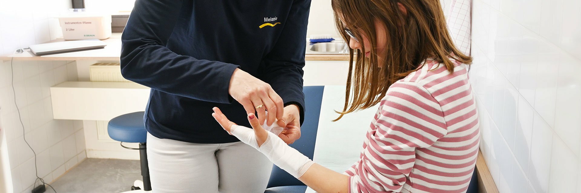 Dazu gehört neben der Therapie mit modernen Wundauflagen und Kompressionsverbänden auch die sogenannte “kleine Chirurgie” – beispielsweise die Versorgung kleinerer Abszesse und Hautveränderungen, die Wundadaptation mittels Hautnähten nach Schnittverletzungen und die Entfernung von Fäden und Klammern.
